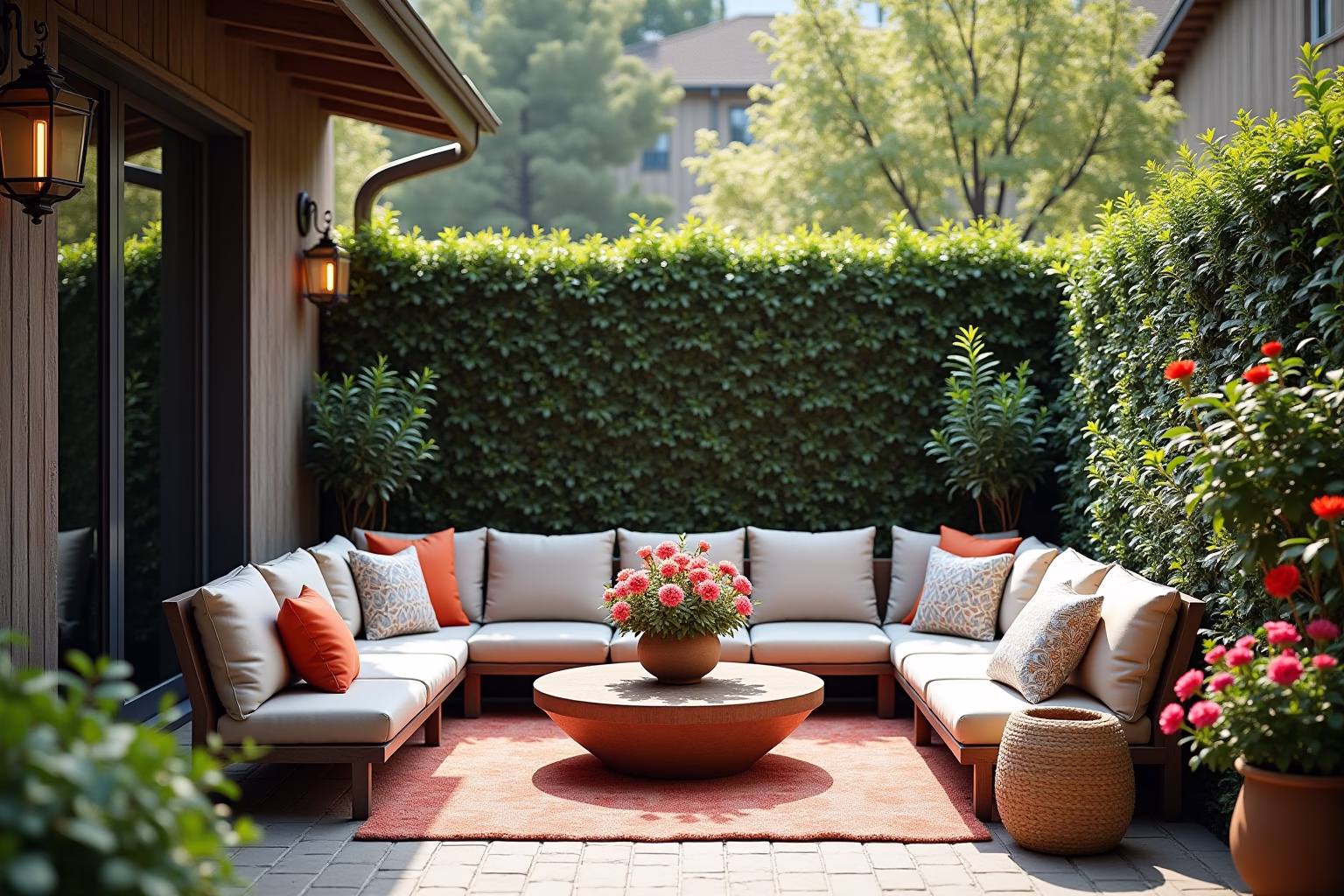 Teppiche: Teppiche schaffen eine warme und einladende Atmosphäre. Wähle Teppiche aus wetterfesten Materialien, die für den Außenbereich geeignet sind.