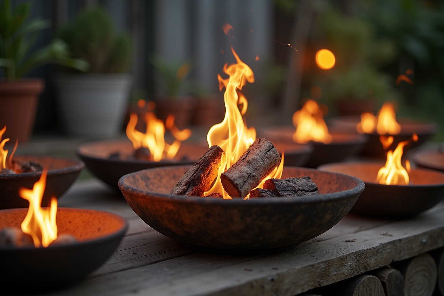 Vorsicht: Verwende nur hitzebeständige Pflanzgefäße und achte darauf, dass die Pflanzen ausreichend Abstand zur Feuerstelle haben.