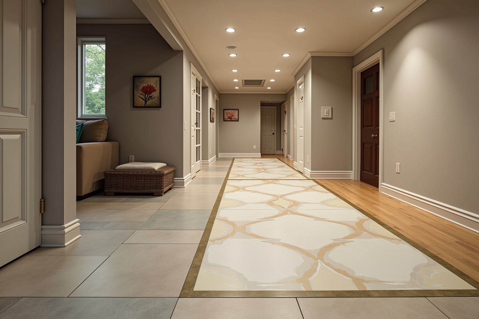 | Optische Illusion | Fliesenmuster simulieren | Kostengünstige Alternative zu echten Fliesen | Wohnkeller, Hobbyräume | Mittel |