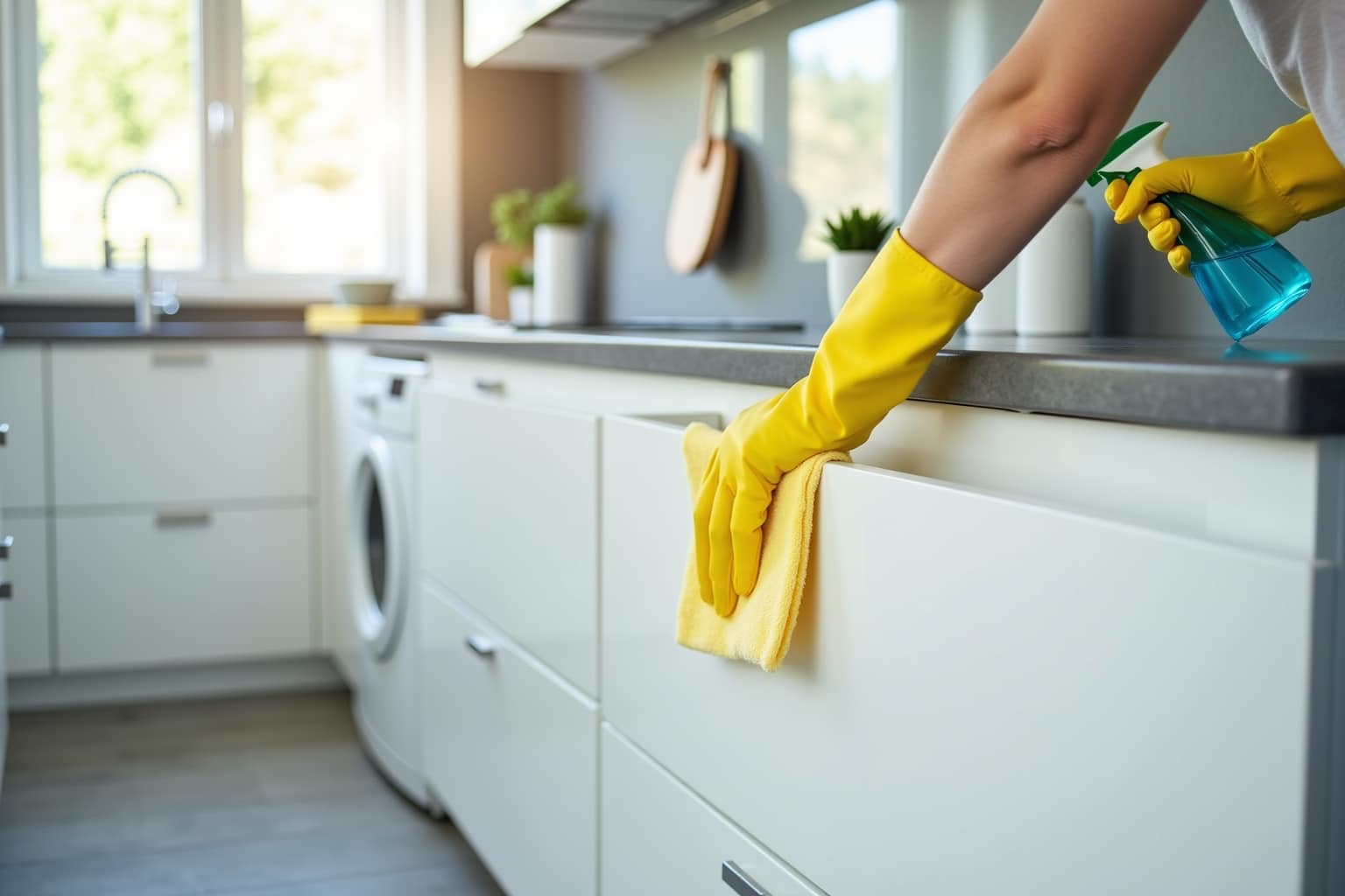 Bevor du mit der eigentlichen Reinigung beginnst, solltest du die Küchenfronten von grobem Schmutz und Staub befreien. Stell dir vor, du bereitest eine Leinwand für ein neues Kunstwerk vor – auch hier ist eine saubere Basis entscheidend für ein brillantes Ergebnis.