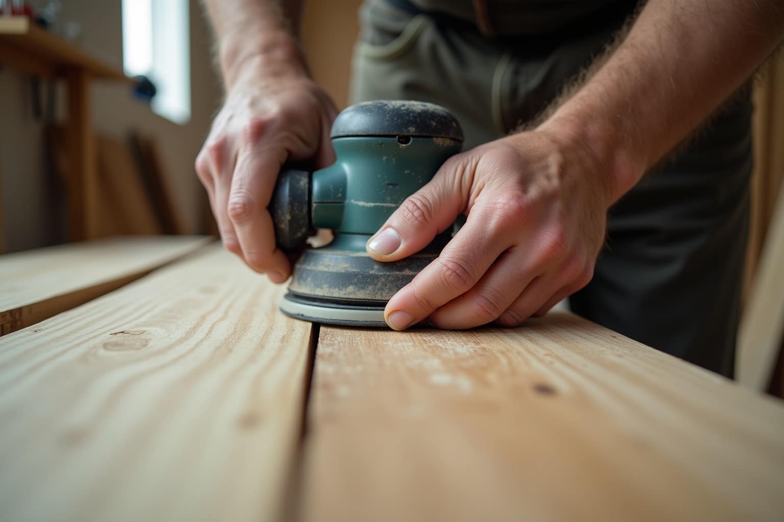 - Schleifstaub entfernen: Der Feinstaub, der beim Schleifen entsteht, kann sich überall absetzen. Sauge den Raum gründlich aus, nachdem der Boden fertig behandelt ist, und wische Oberflächen feucht ab, um Staub zu binden.